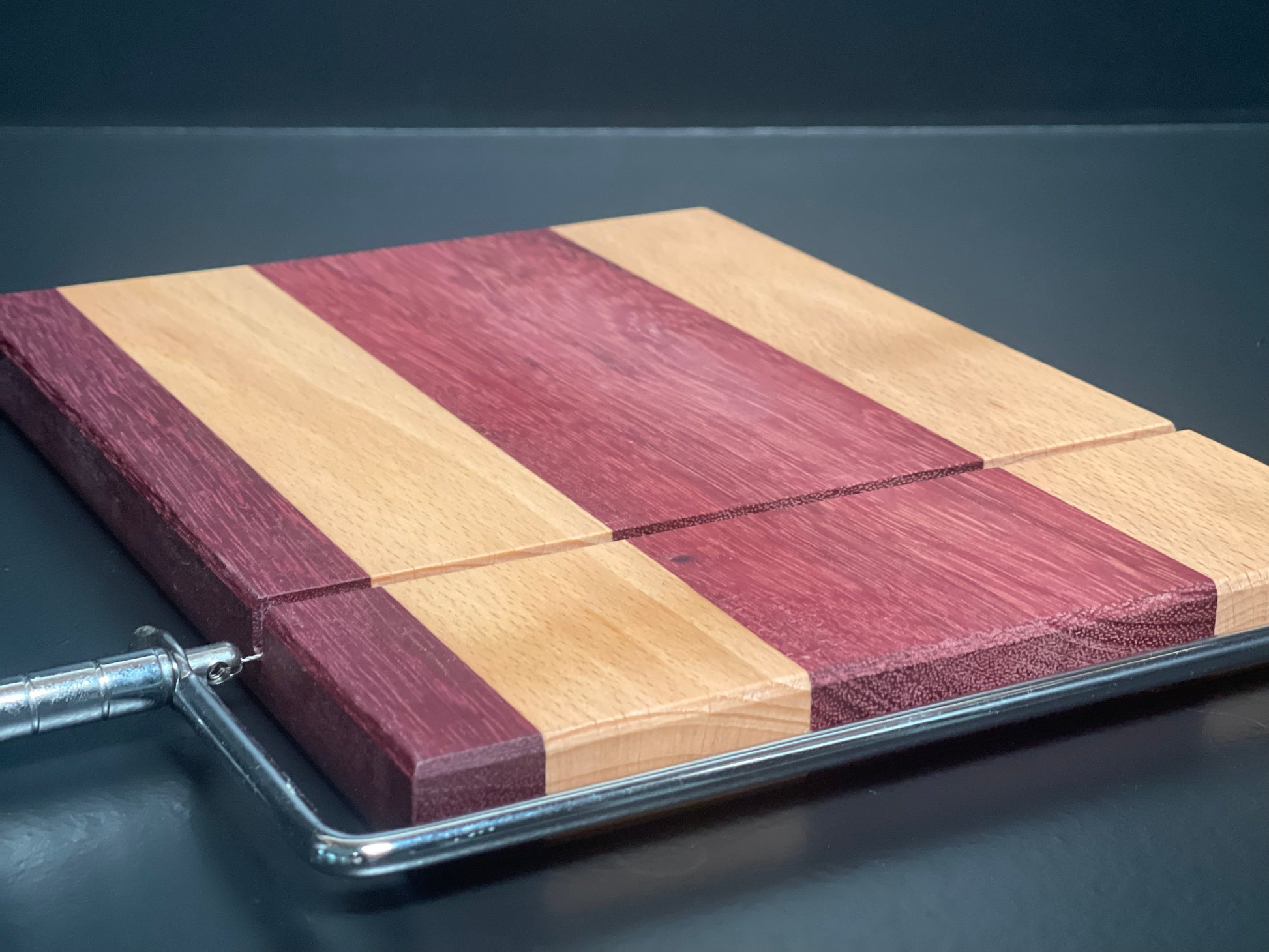 Elegancka i praktyczna deska do krojenia serów wykonana z połączenia drewna buku i amaranthu, które tworzy efektowny kontrast kolorów i unikalne usłojenie. Solidna i trwała – idealna do serów, wędlin i przekąsek.